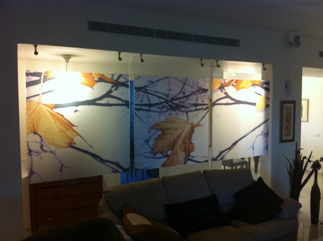 פתרון נוסף הוא להשתמש בזכוכית שעליה ישנו הדפס דיגיטלי. ניתן לבחור את ההדפס בהתאם לעיצוב החדר, כך שתיווצר הרמוניה עיצובית בחלל. כמו כן ניתן לבחור בגימורים שונים שמשנים את רמת השקיפות של הזכוכית כמו בזכוכית אטומה, זכוכית חלבית או זכוכית שעברה עיבוד של התזת חול.