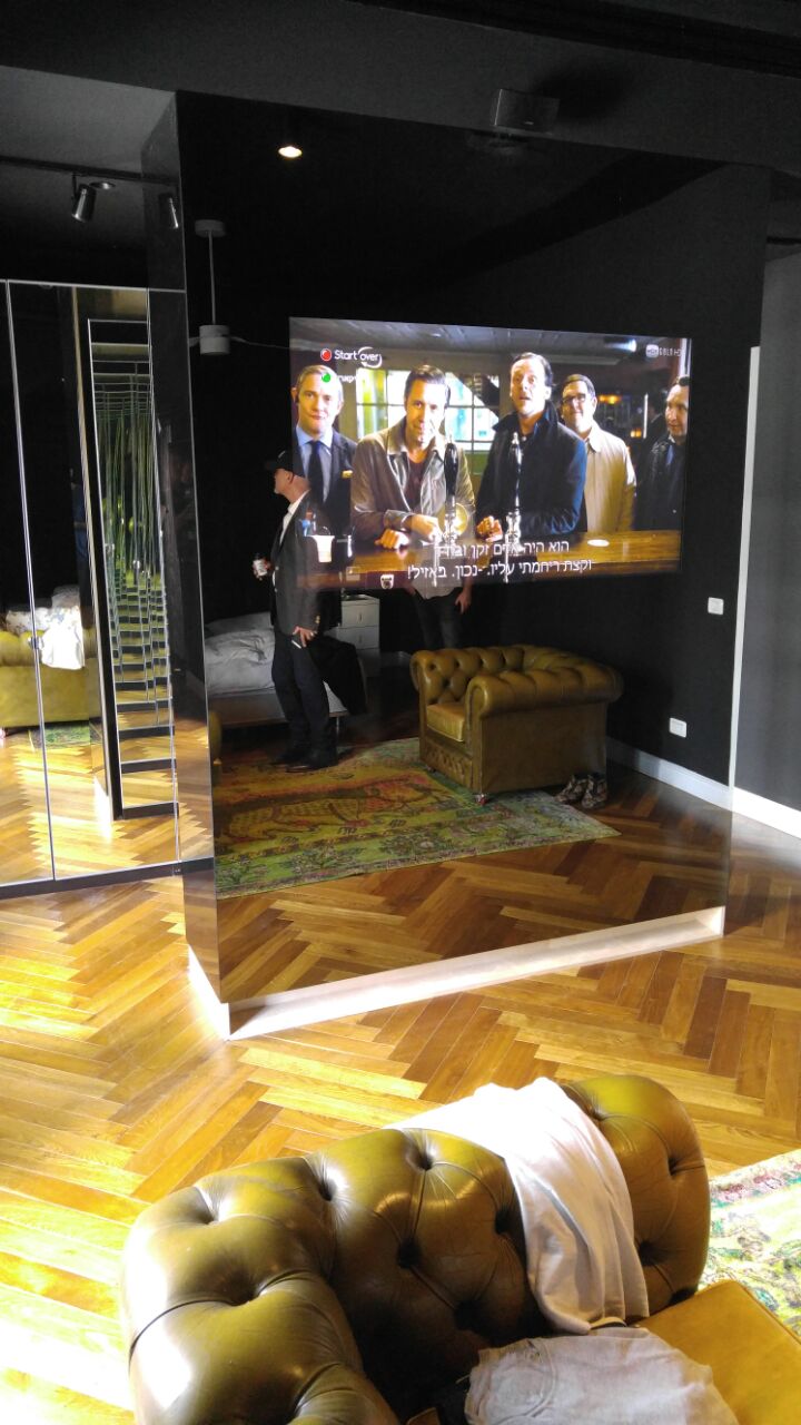 חיפוי קיר סלון בזכוכית מראה MAGIC MIRROR היא גם דרך להסוות את הטלויזיה ולהפוך את העיצוב לזורם וקליל. בדרך זו אפשר למצוא נקודת מיקוד אחרת בחלל, שלא תתחרה עם הטלויזיה על מרכז החדר, למשל יצירת אומנות שחשובה לכם, או שידה או כל אלמנט אחר שברצונכם להבליט.